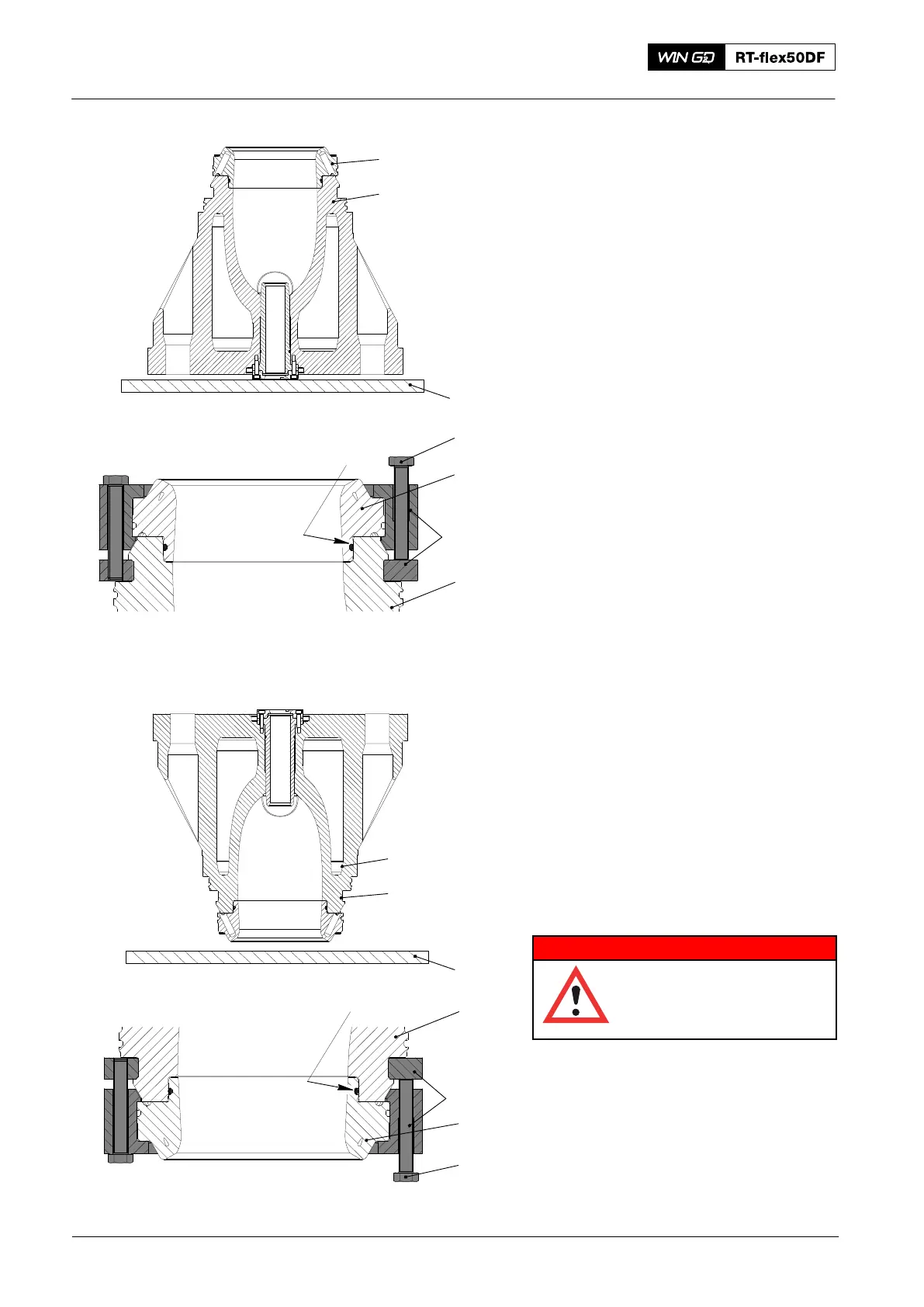 5) Turn equally the three jack screws (4)