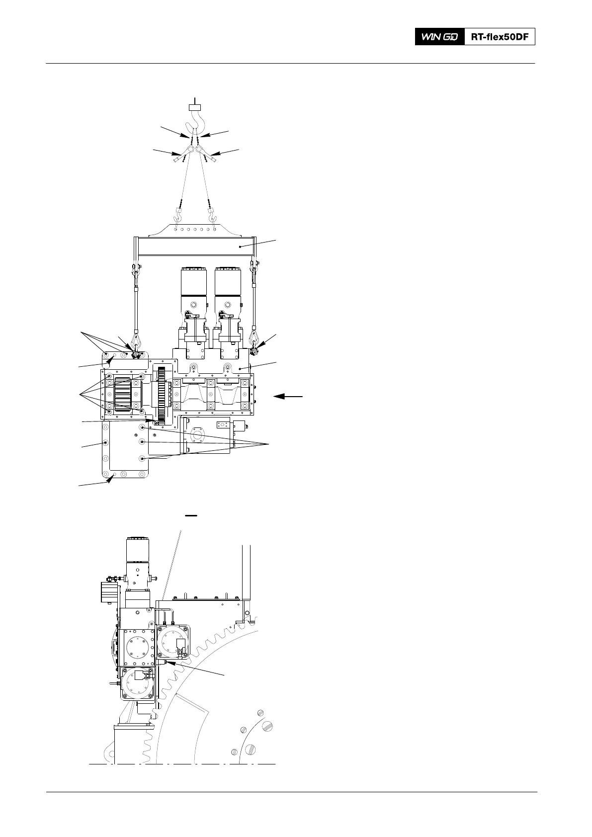 5) Attach the two eye bolts (EB) to