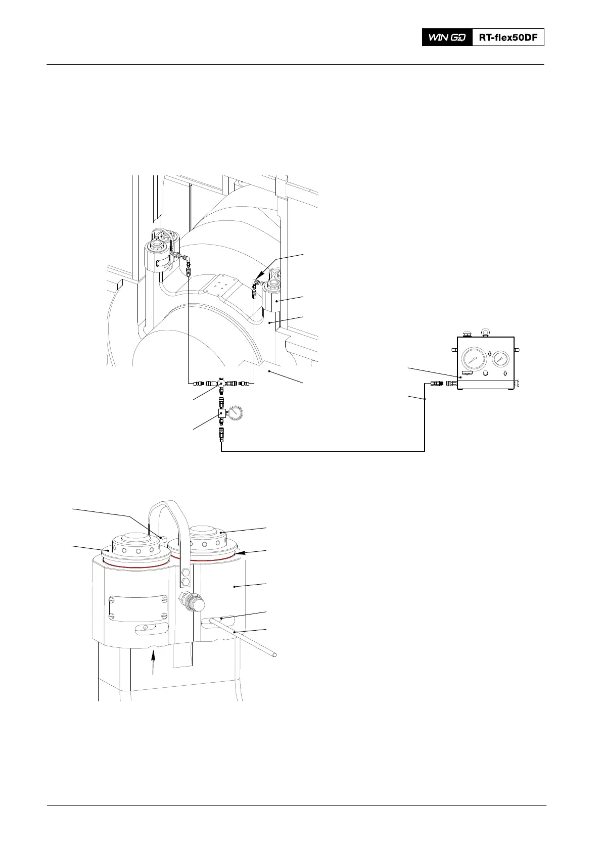 5) Connect the two double pre-tensioning jacks (94114B, Fig. 2) to the hydraulic