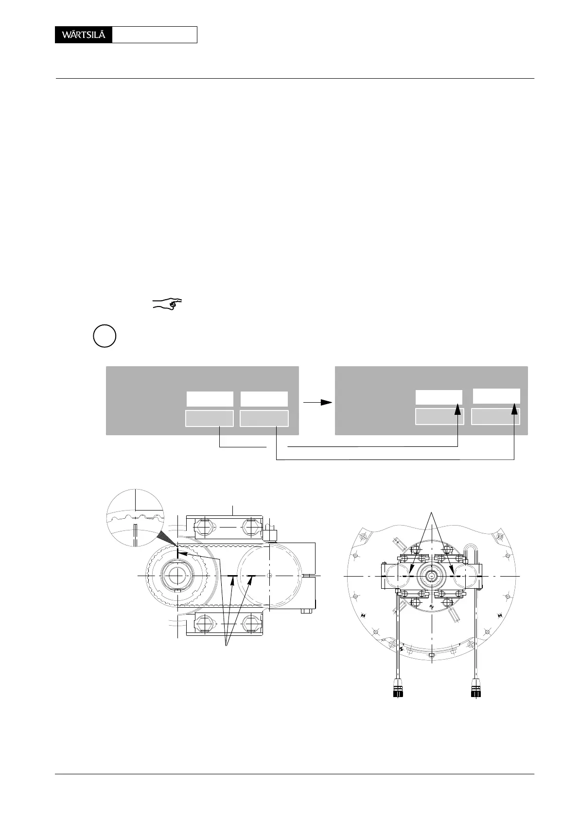 ⇒ Turn the engine with the turning gear until the flywheel marks show T.D.C. of