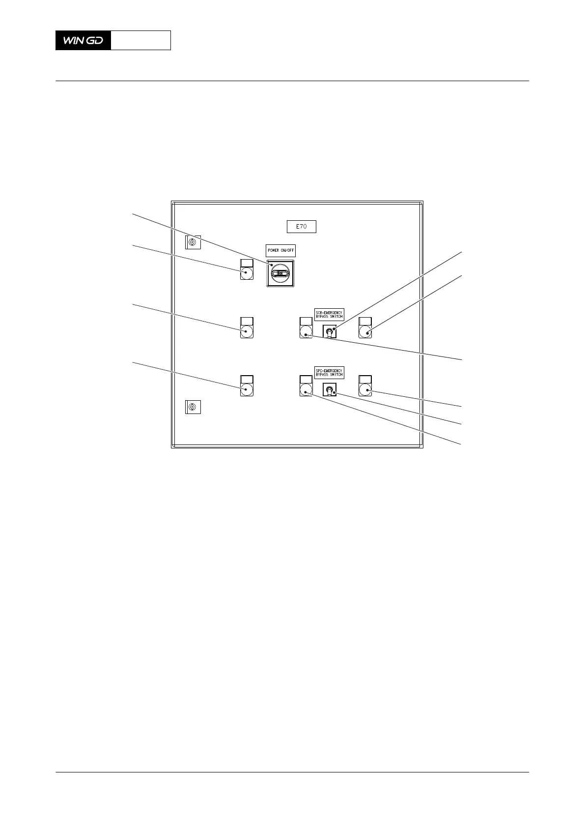 The control box E70 is installed on the engine and has switches and visual indicators.
