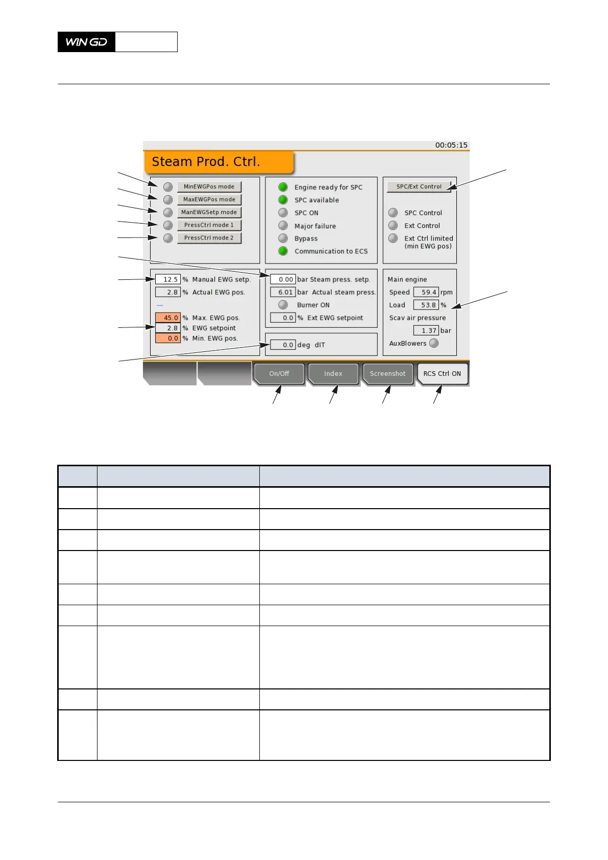 001 ON/OFF button Starts or stops the SPC system