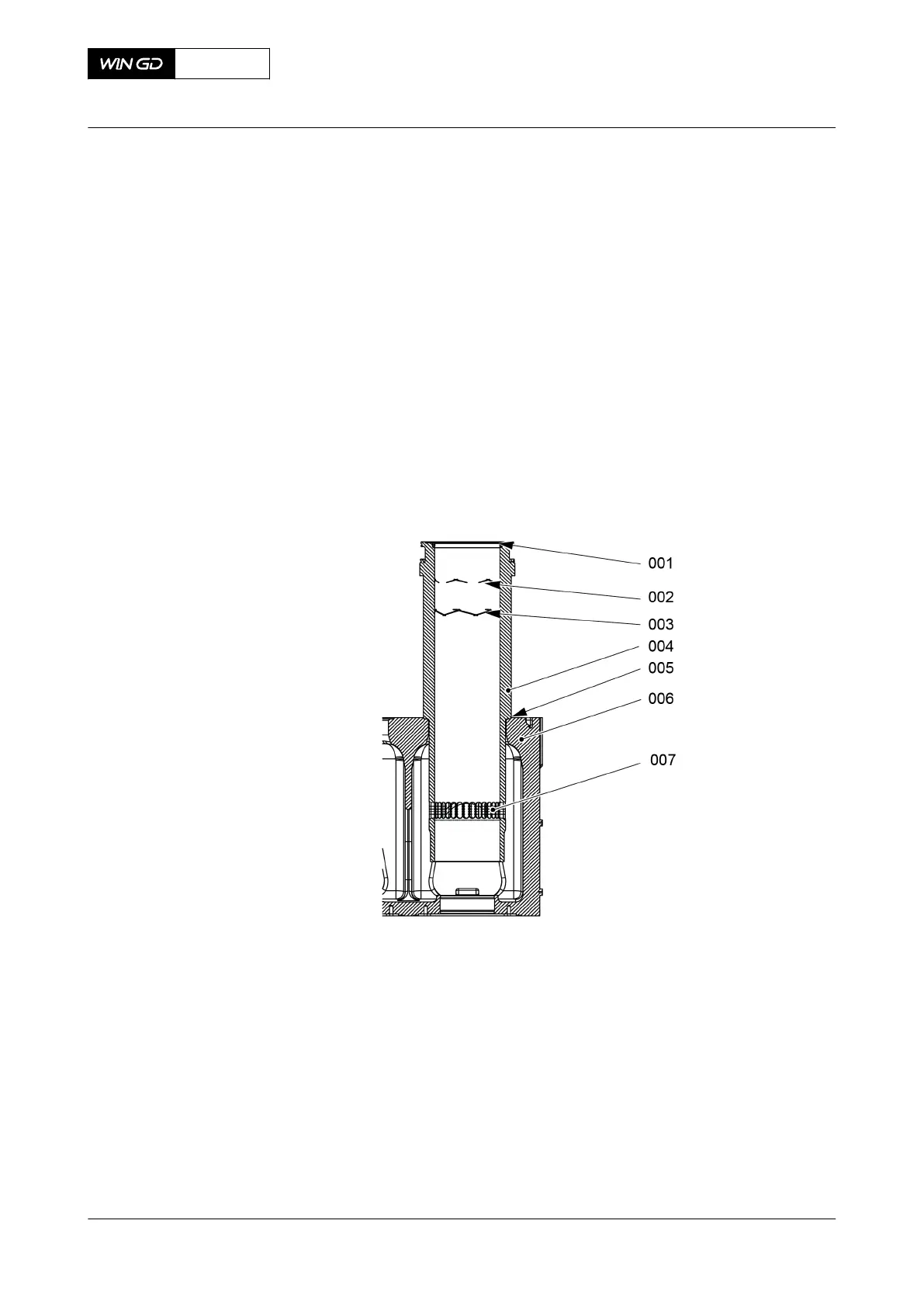 The surfaces of the cylinder liner (004) and the cylinder jacket (006) make a metallic seal (005).