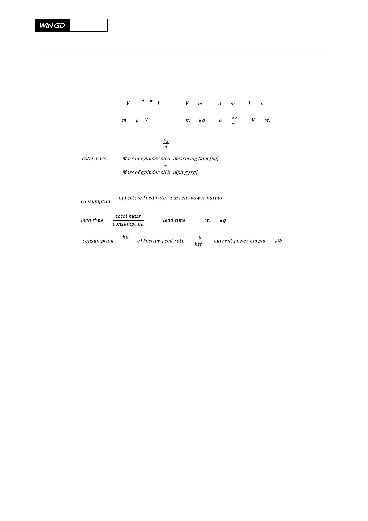Cylinder lubricant quantity in piping and measuring tank: