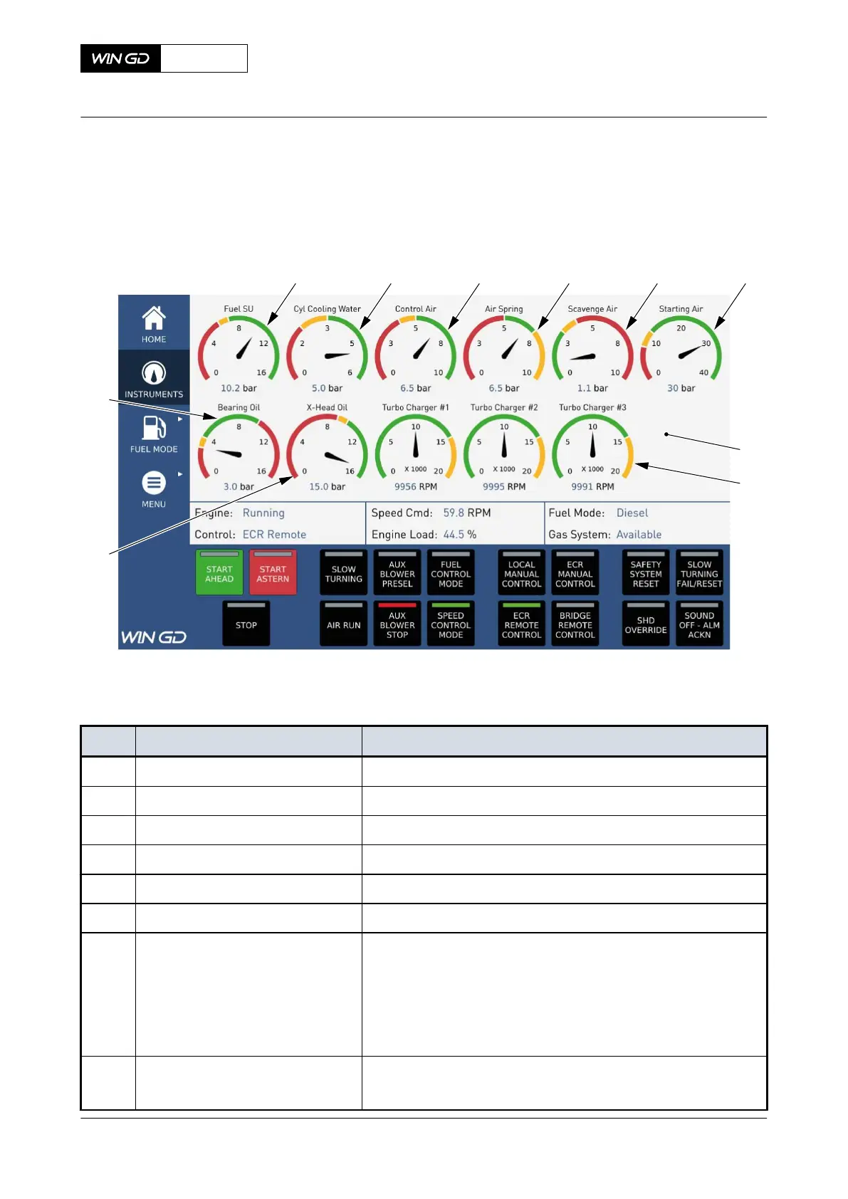 006 Starting Air Shows the starting air pressure value in bar