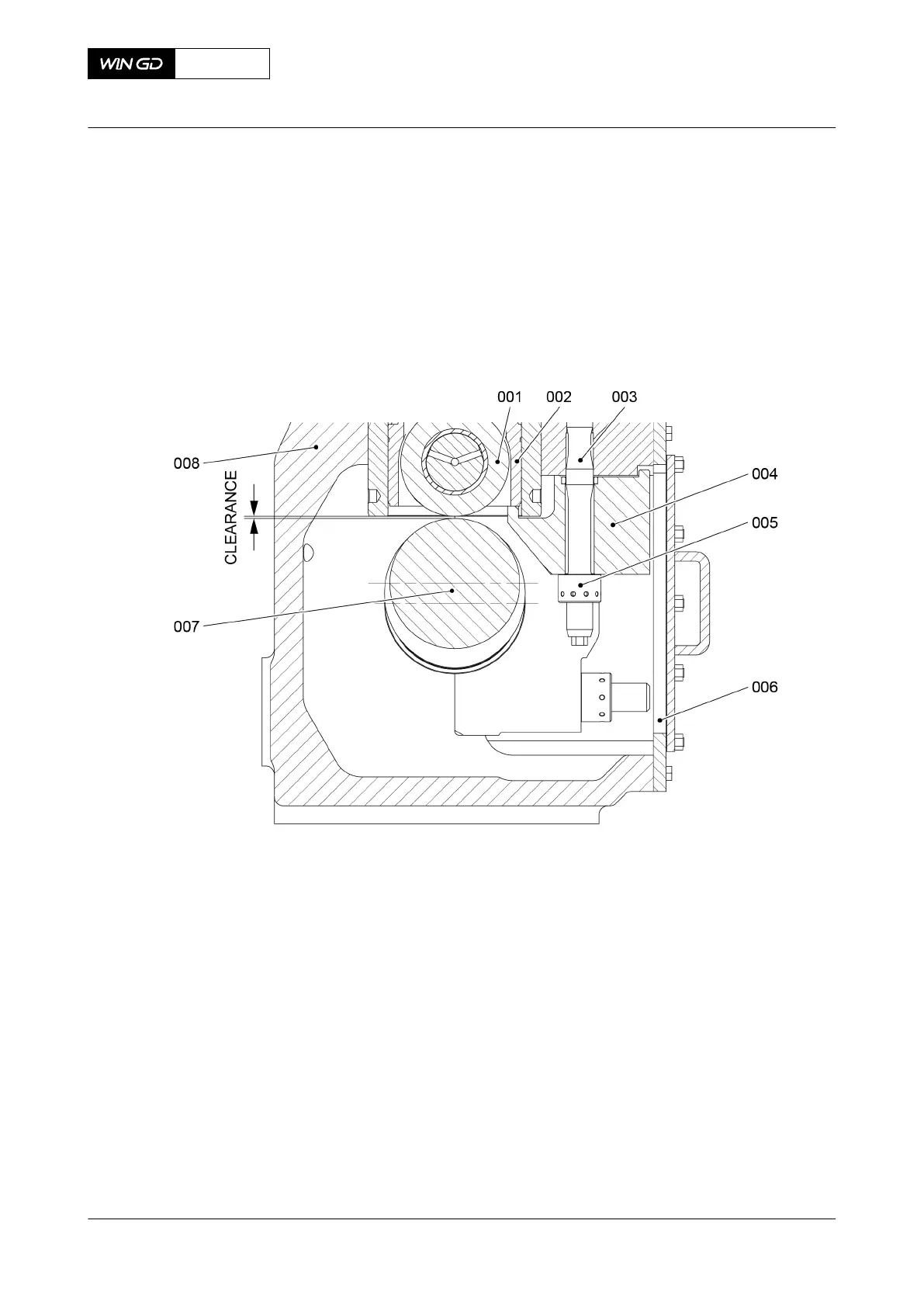7 Operate the turning gear to turn the supply unit cam at TDC to push the roller (001, Figure