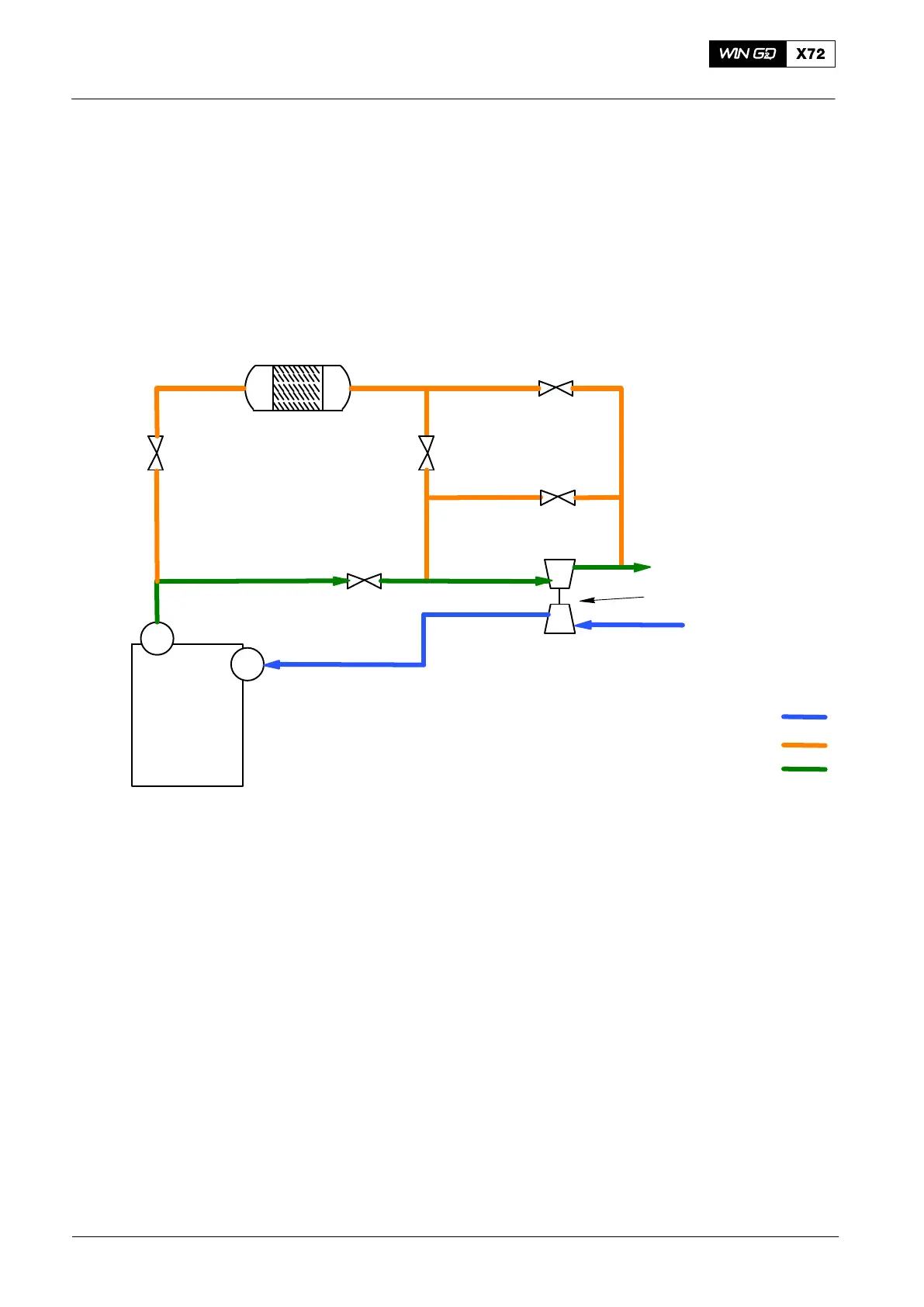 The valve V3 is fully open and the valves V1 and V2 are fully closed. Urea solution is