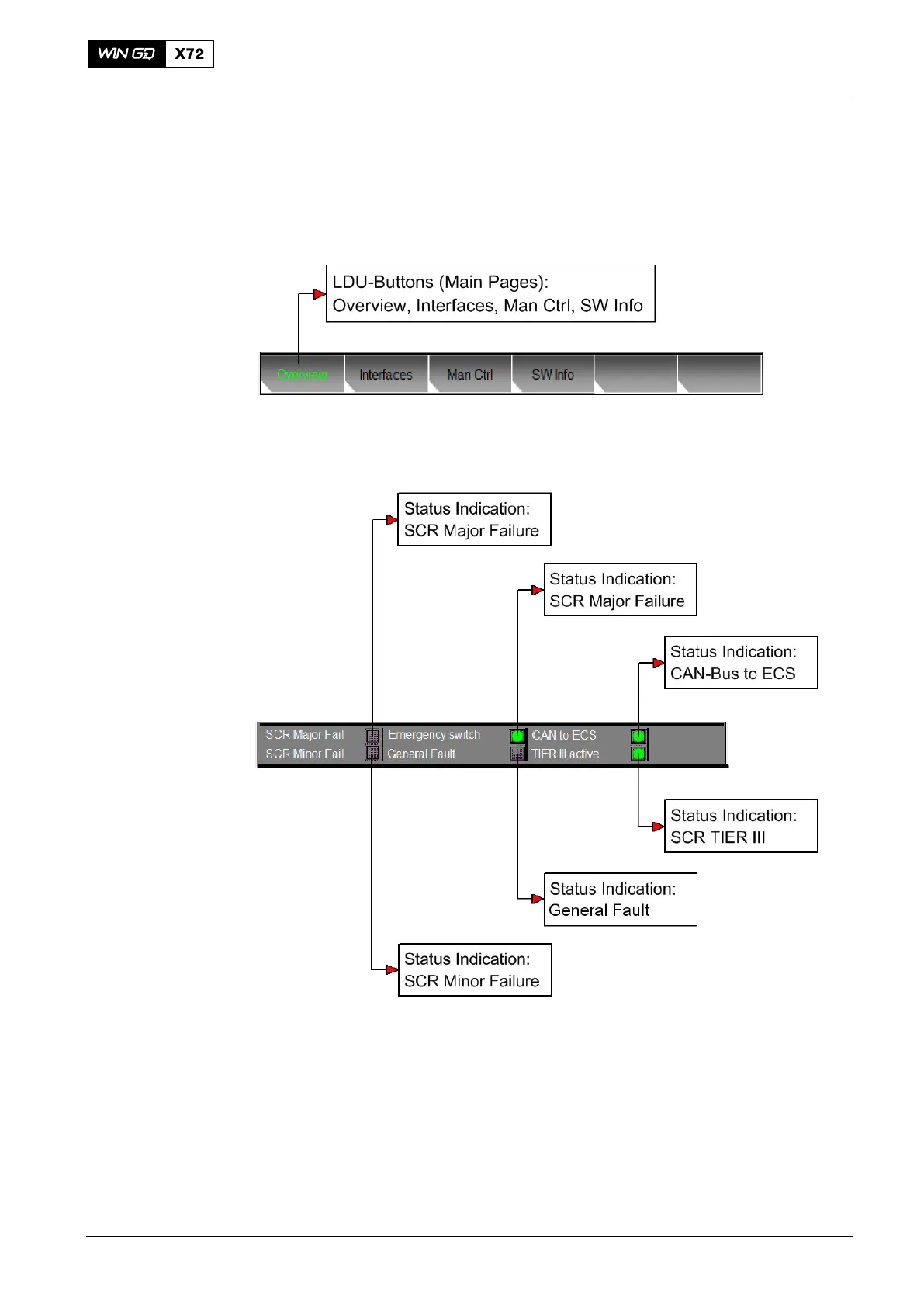 Fig. 14 and Fig. 15 show the global buttons and status indications that are available at