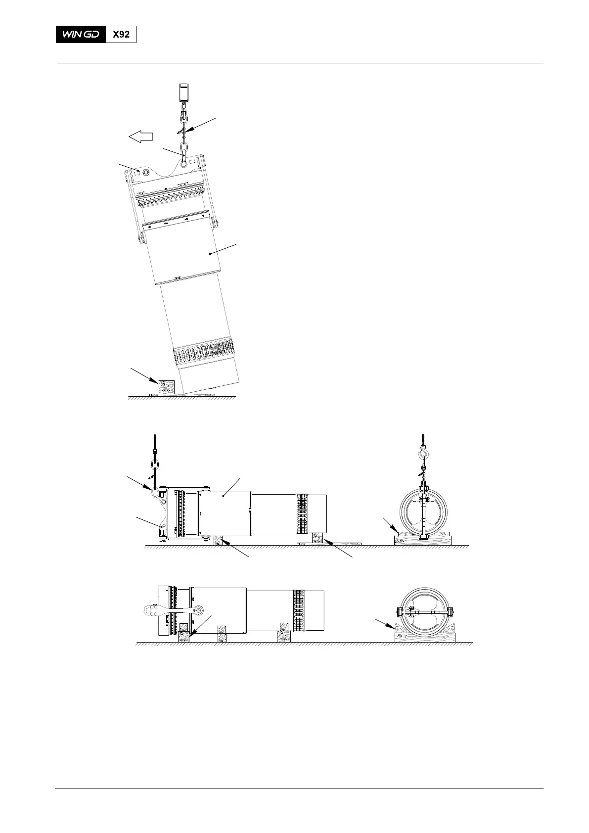 7) Put the wooden chocks (3) in position o