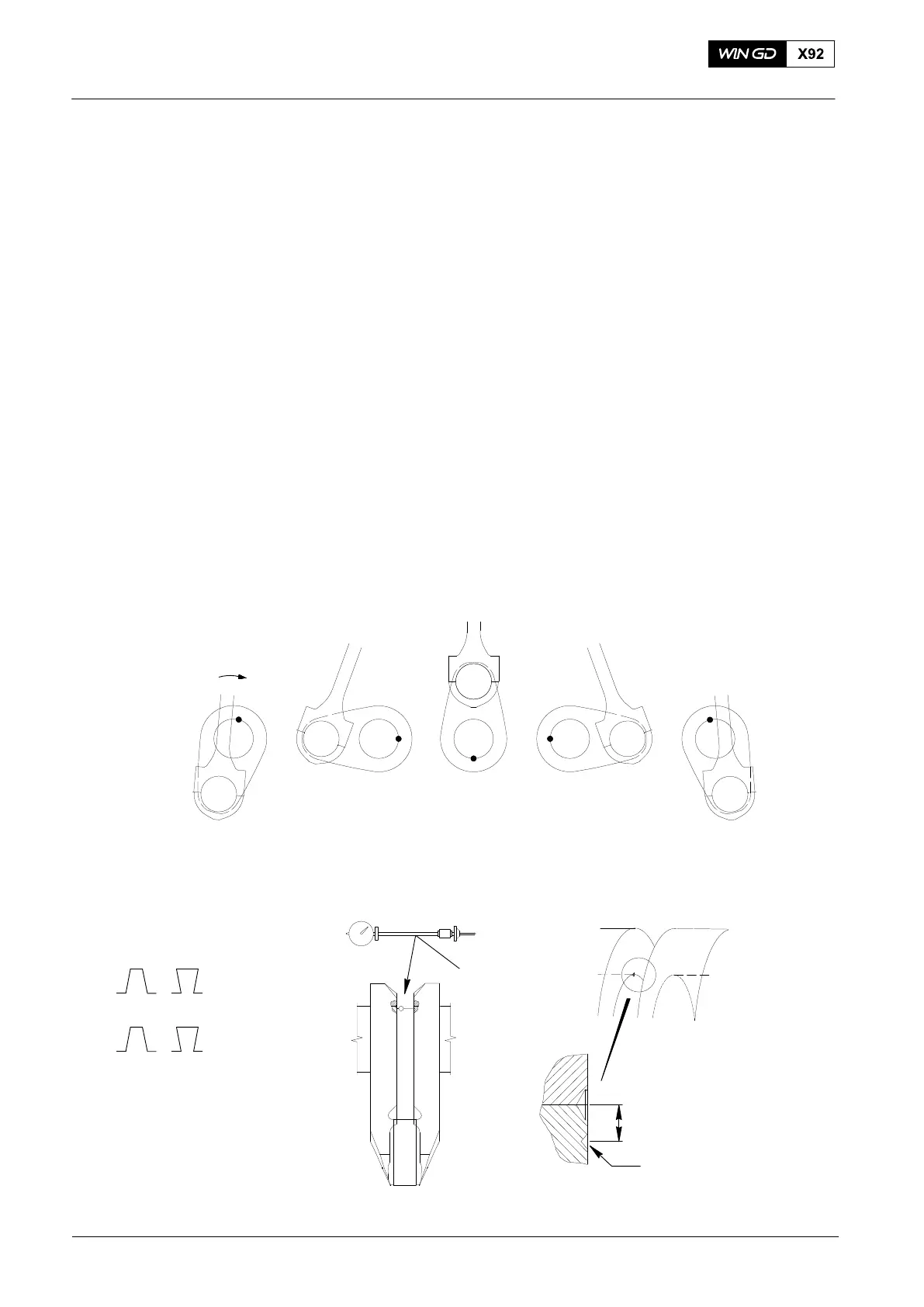 6) Use the turning gear to move the crank to each position shown. At each position,