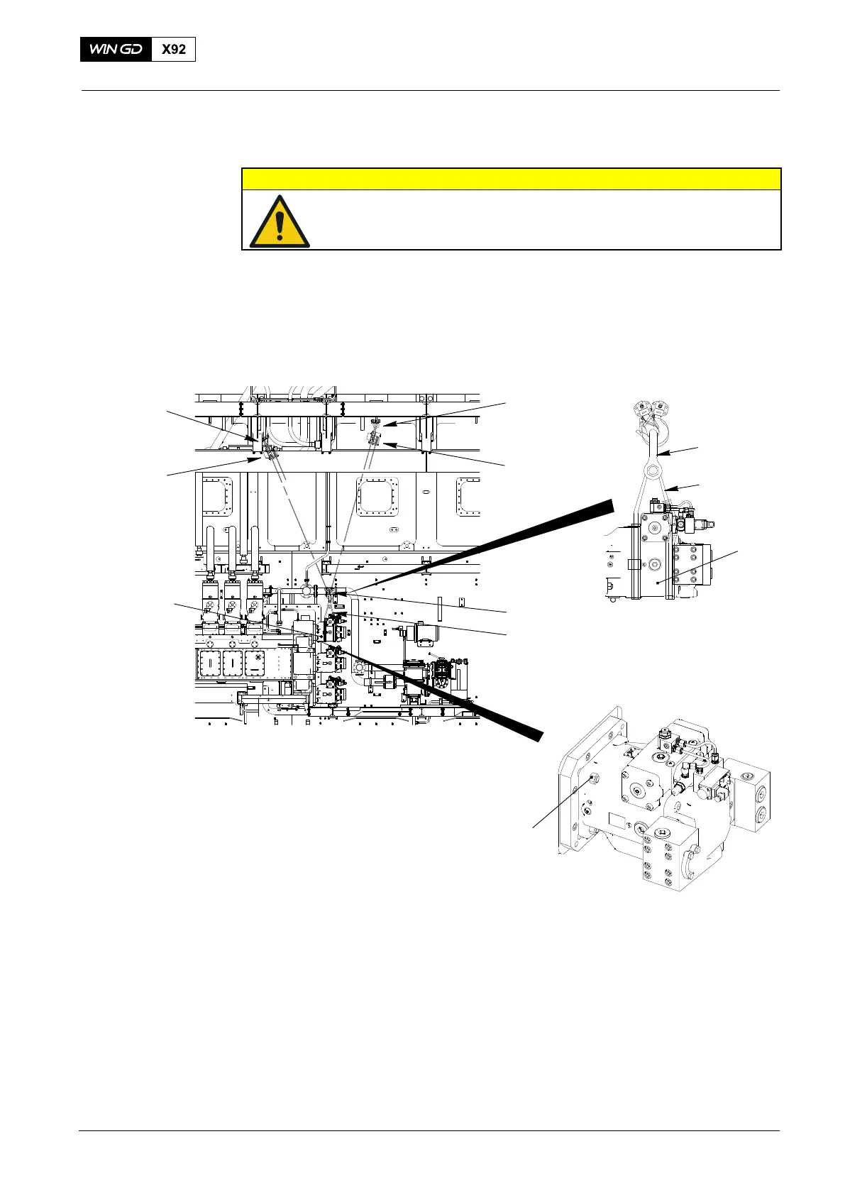 Injury Hazard: The weight of the servo oil pump is 230 kg. Make