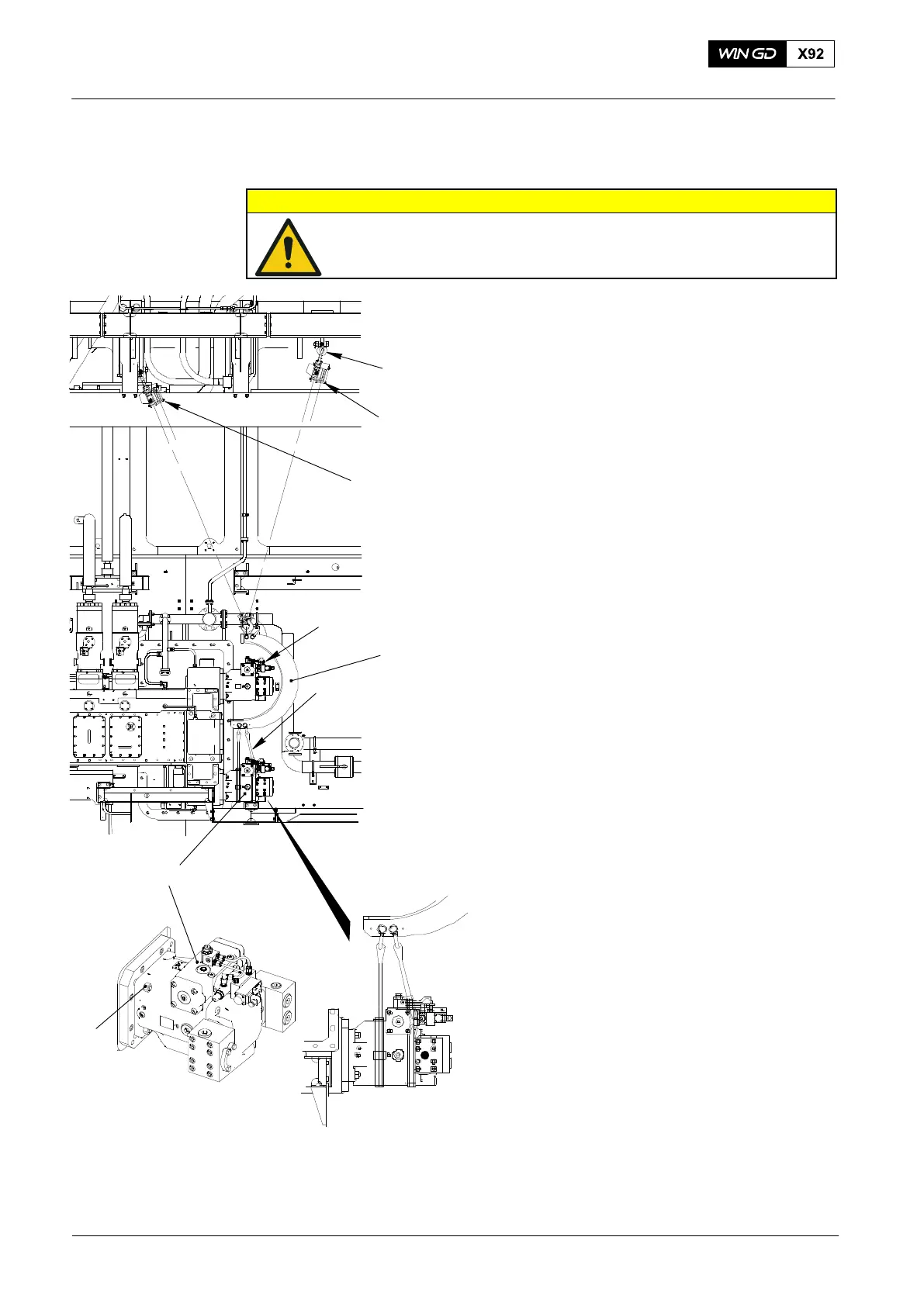 Injury Hazard: The weight of the servo oil pump is 230 kg. Make