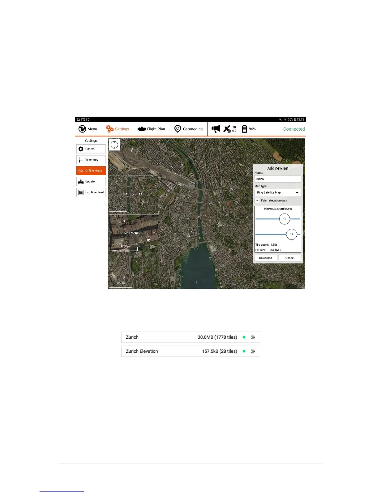 WingtraPilot,navigatetothesettingstab,select"OfflineMaps"again,andclickontoyournewset.On