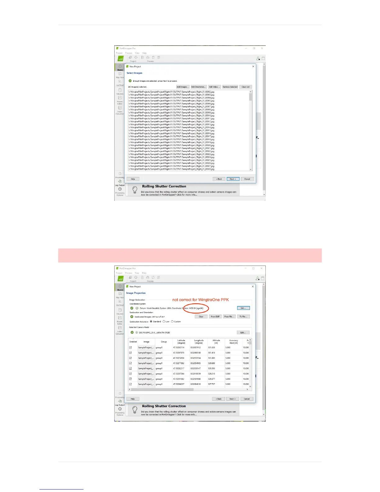 Caution:ThedefaultselectionofimagecoordinatesystemisnotcorrectforWingtraOnePPKflight