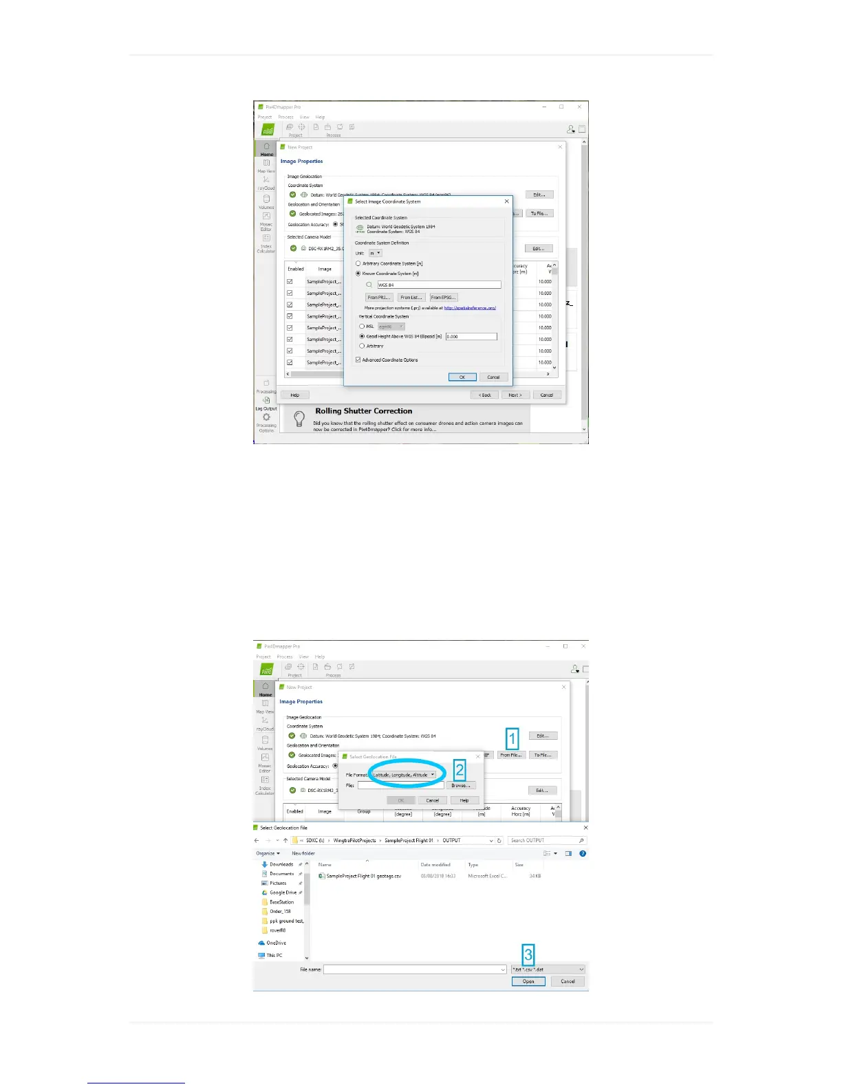 Note:tohavethecorrect*.csvfilestructurepleasemakesuretohaveselectedpix4dcsvfiletypein