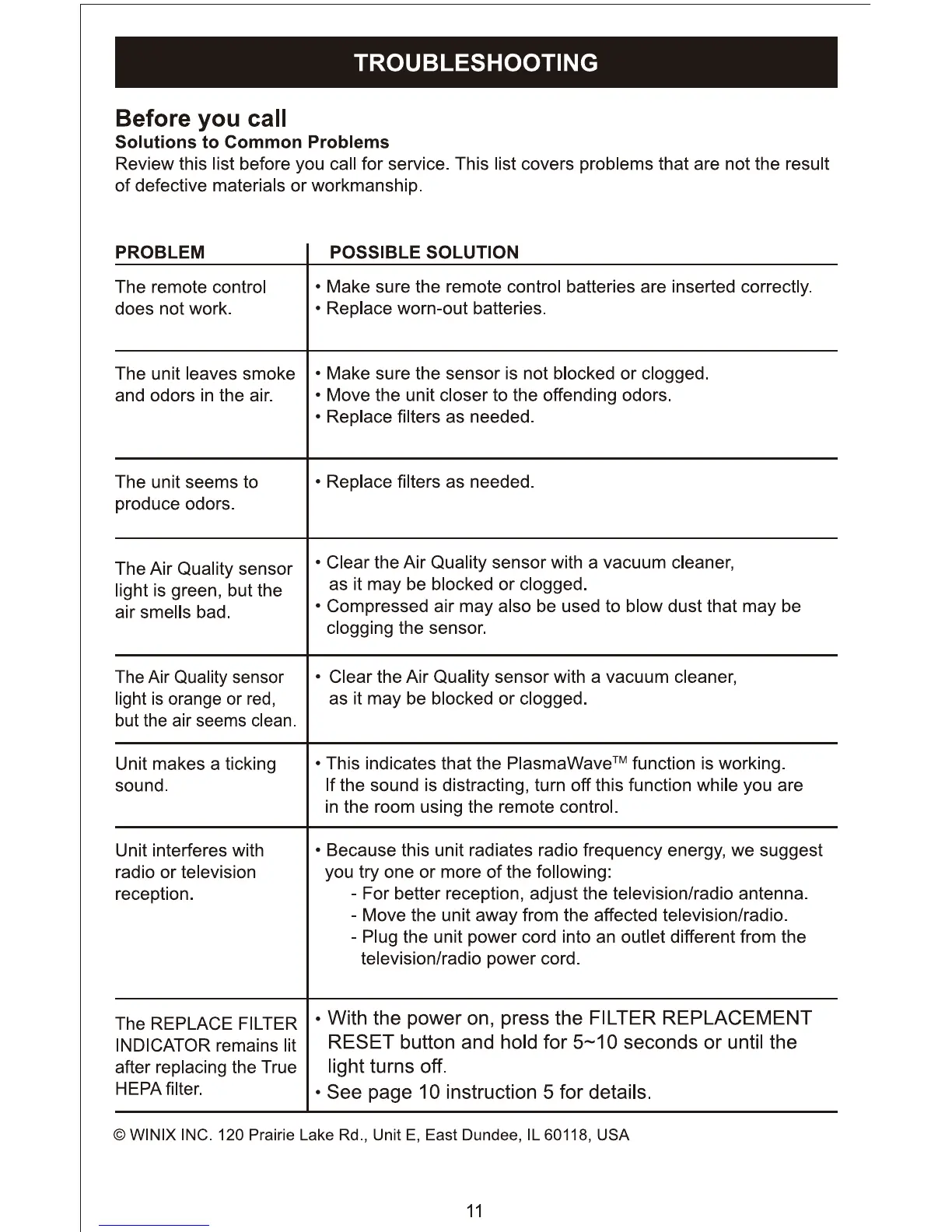 Winix 6300 - Troubleshooting Common Issues; Problem Resolution Guide; Interference and Sensor Issues