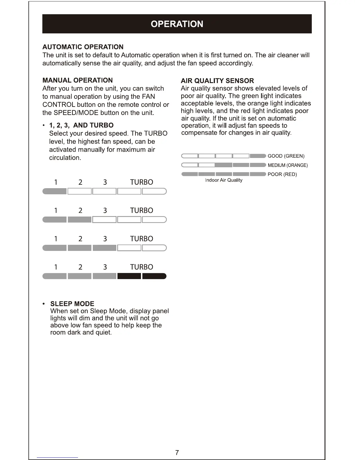 Winix 6300 - Operating the Air Cleaner; Automatic and Manual Operation; Air Quality Sensor Readings