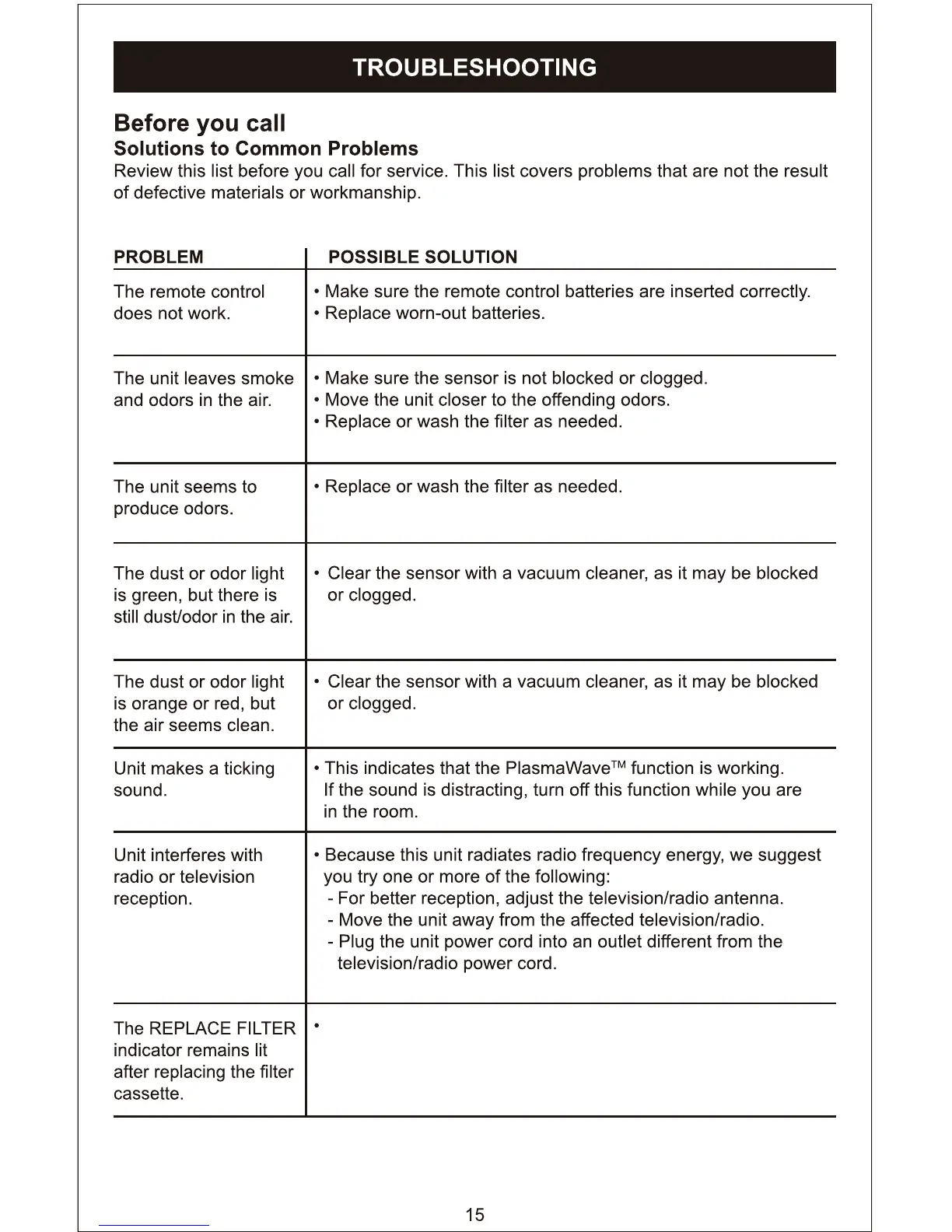 Winix 9500 - Troubleshooting Common Problems; Solutions to Common Issues