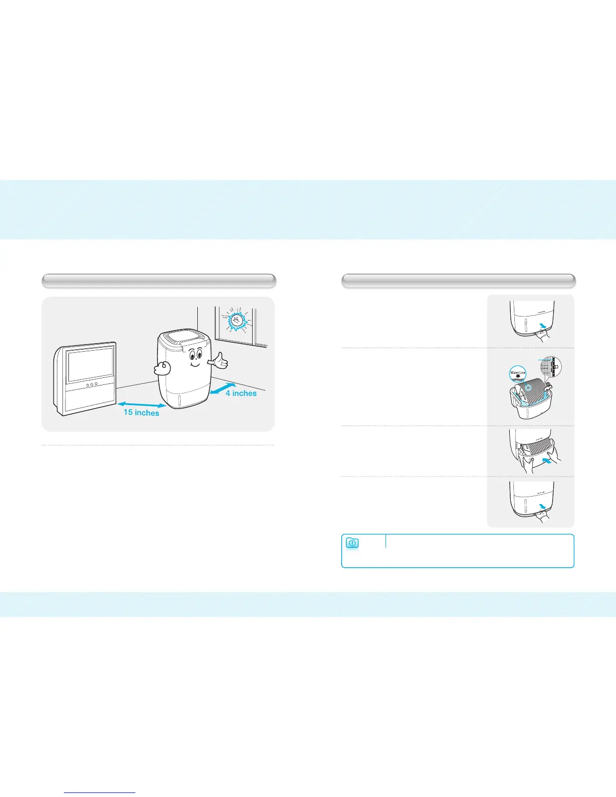❷ Fill the water tank with cool tap water