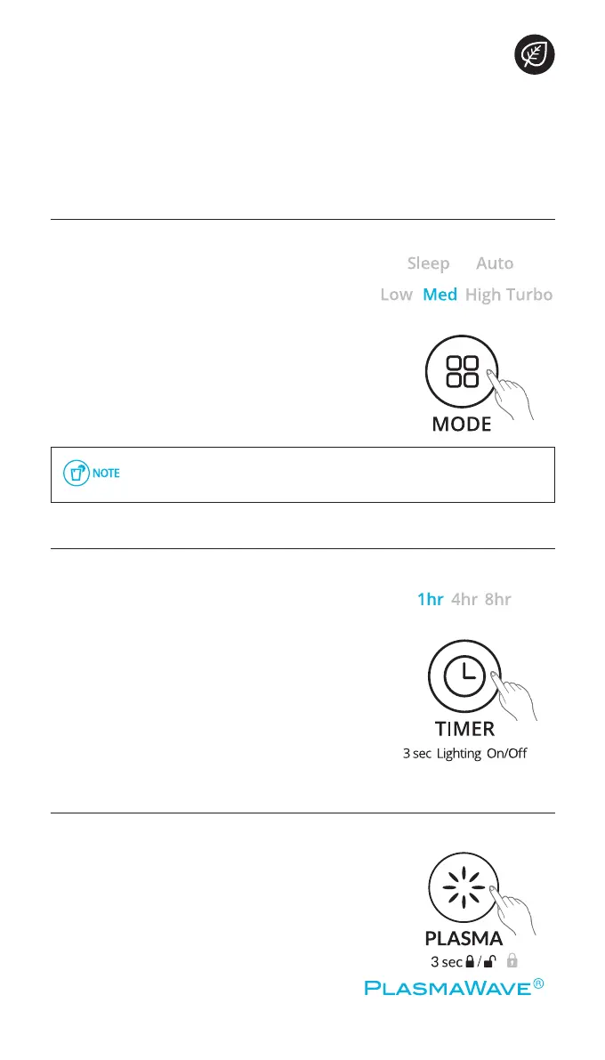 settings. (Auto, Sleep, Low, Medium, High, Turbo)