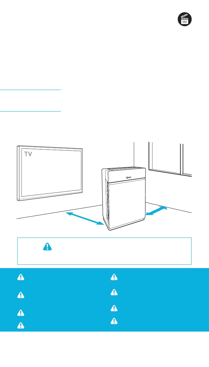 Achten Sie darauf, dass der Luftreiniger 30 bis 46 cm Abstand zu Fernsehgeräten,