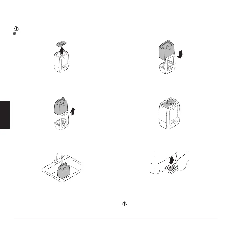 HINWEIS: Tragen Sie den Wassertank immer mit beiden Händen.