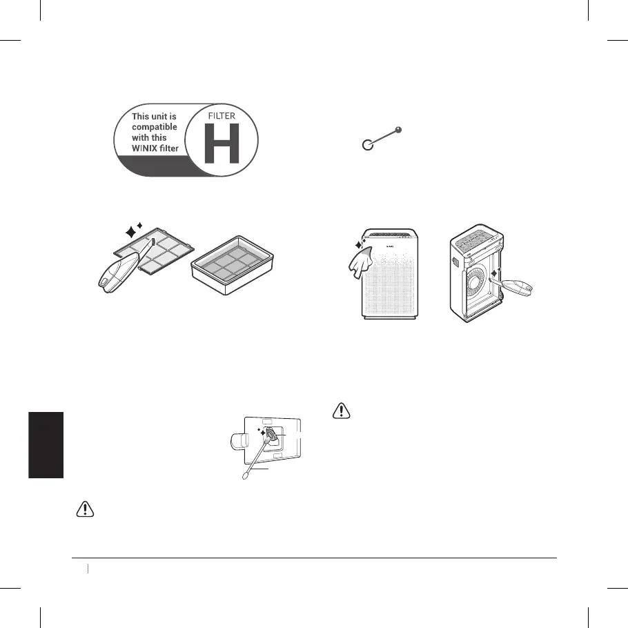 Reinig het voorfilter met een stofzuiger of een zachte borstel.