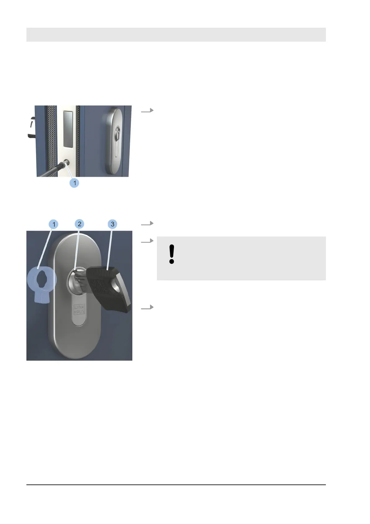 4. If the cylinder (2) is stuck, carefully jiggle with the key