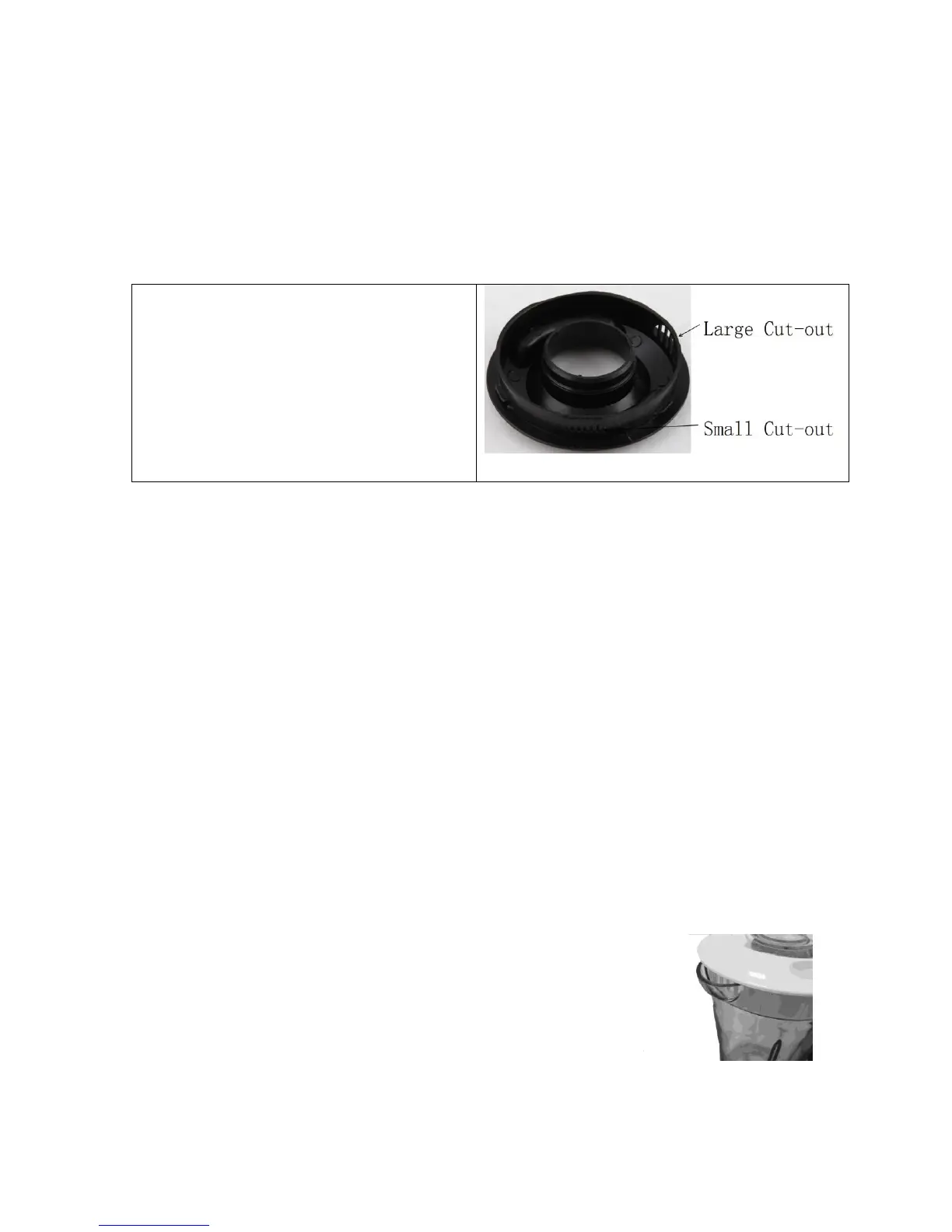 3. Insert juice extractor (as shown) by lining up the cut-outs on the extractor with the