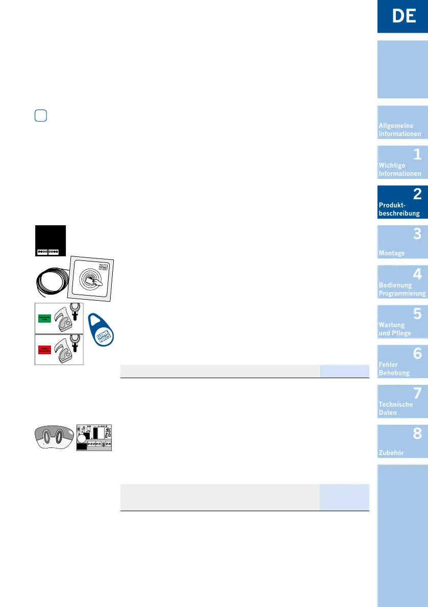 Das Önen der Tür von Außen erfolgt per Zutrittskontrolle (Transponder, Funkfernbe-