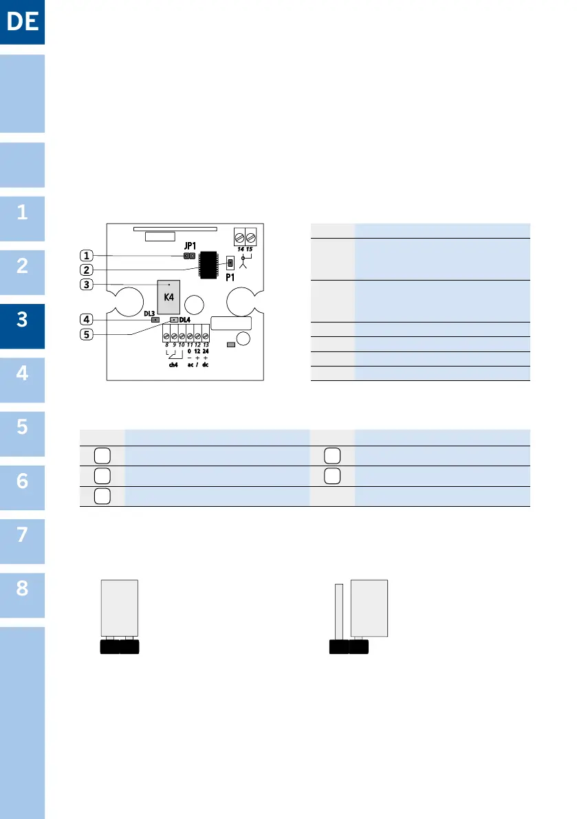 • Das Relais K4 können Sie durch den Jumper JP1 als ON/OFF oder Impuls einstellen