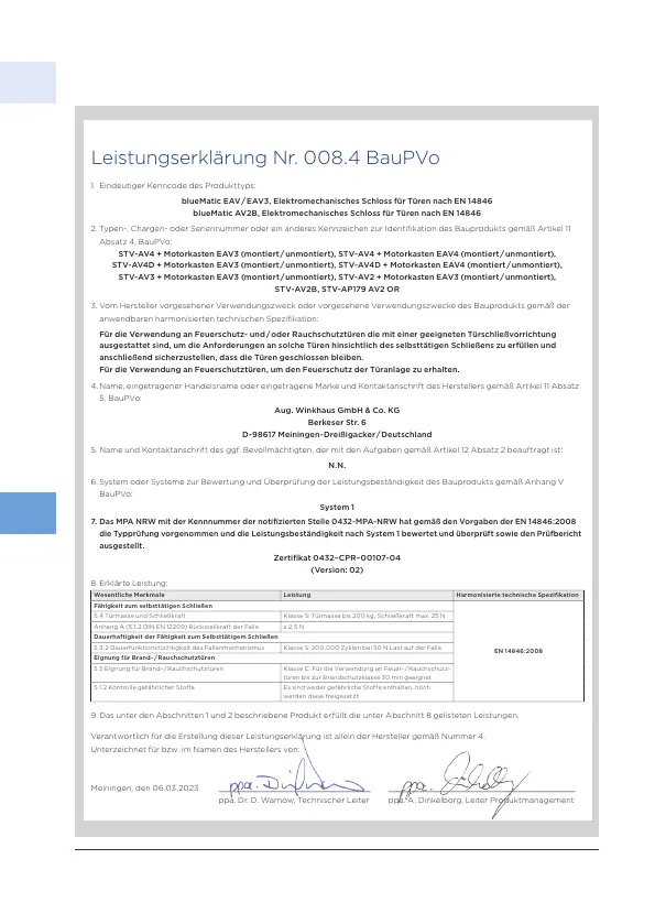 Leistungserklärung Nr. 008.4 BauPVo