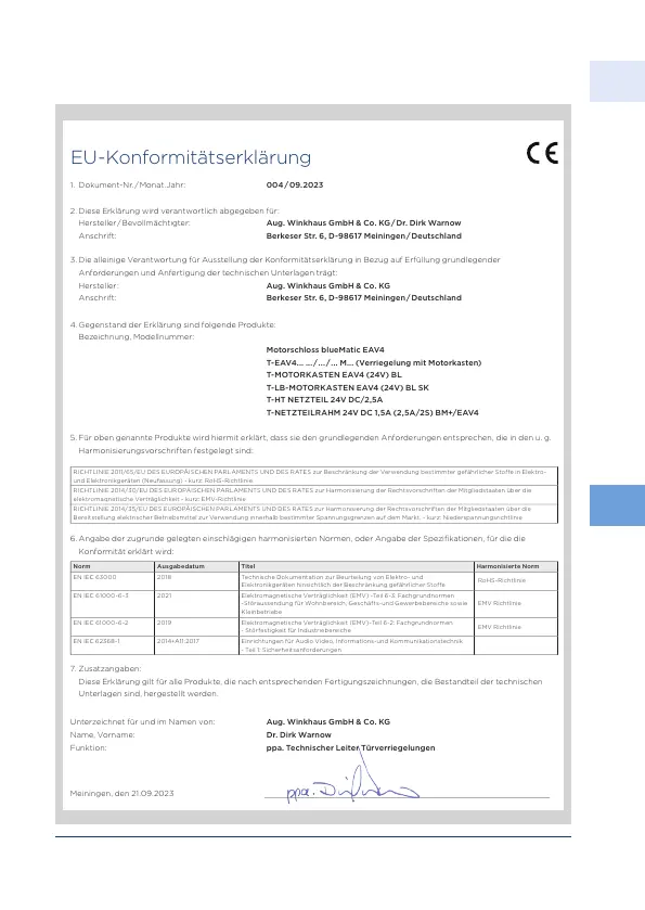 Hersteller / Bevollmächtigter: Aug. Winkhaus GmbH & Co. KG / Dr. Dirk Warnow