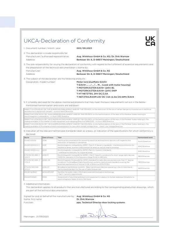Signed for and on behalf of the manufacturer by: Aug. Winkhaus GmbH & Co. KG