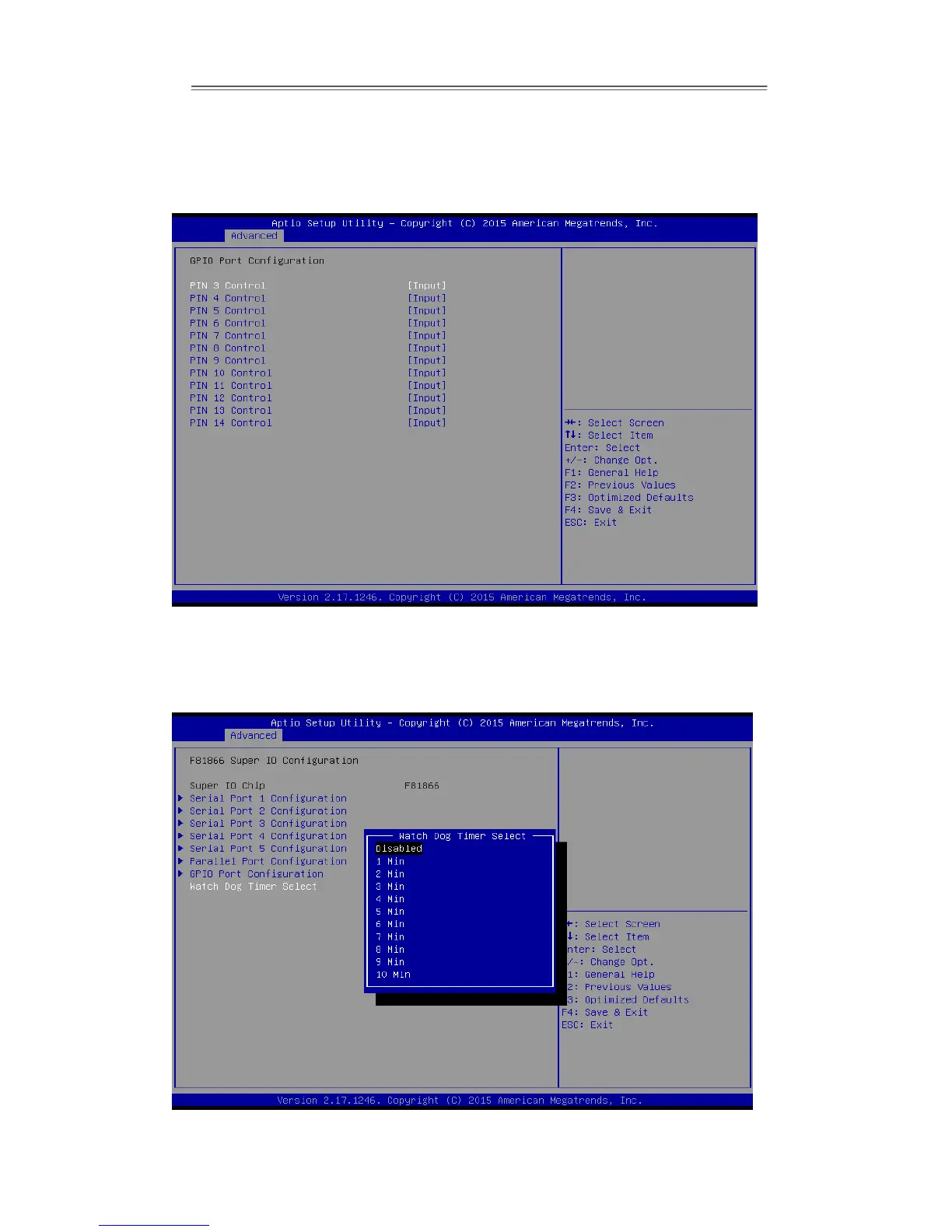 You can either disable Watch Dog Time Select, or set up the time.Use <Arrow> keys