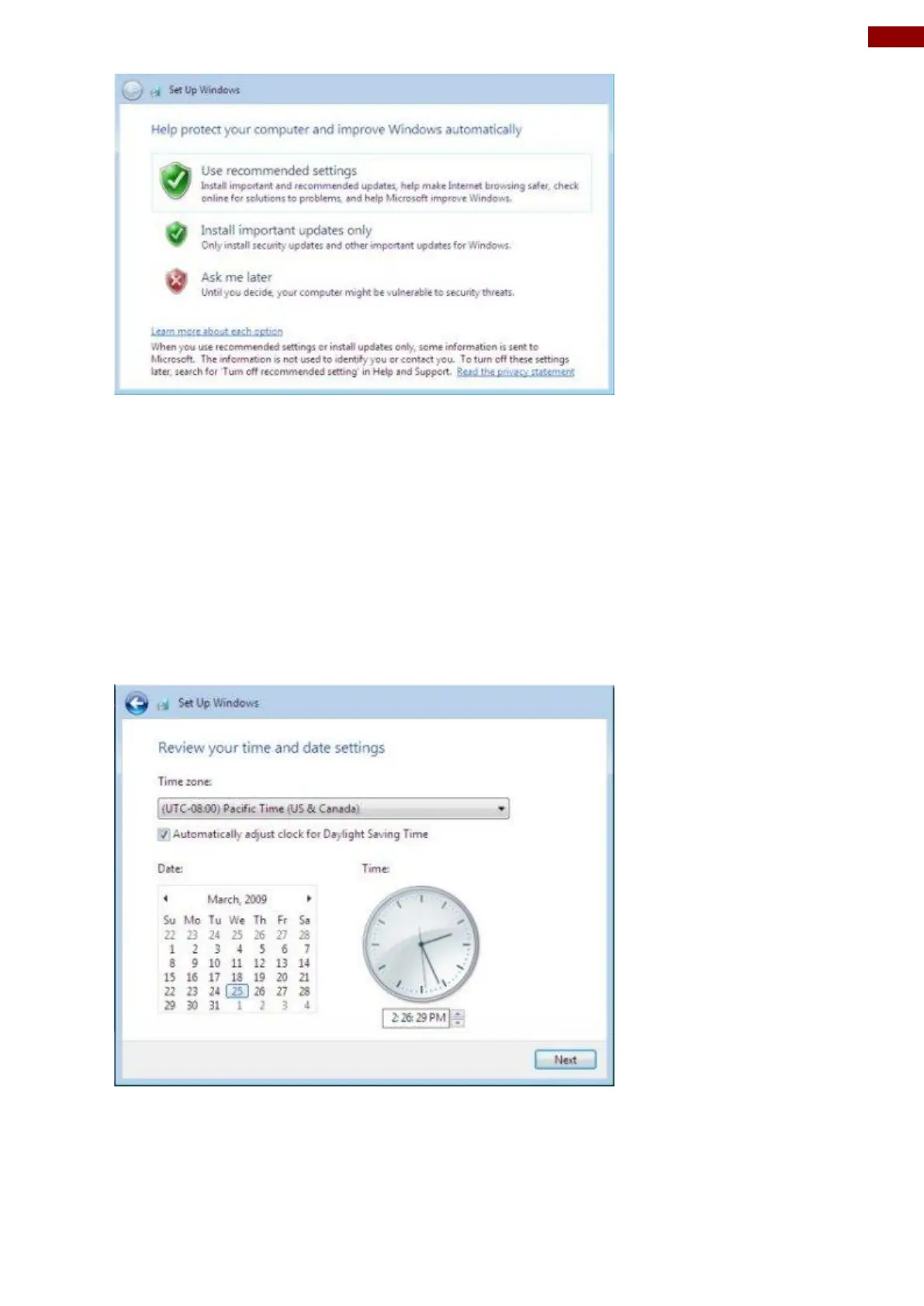 Verify your time zone, time, and date. Make any necessary changes. Then click Next to continue.