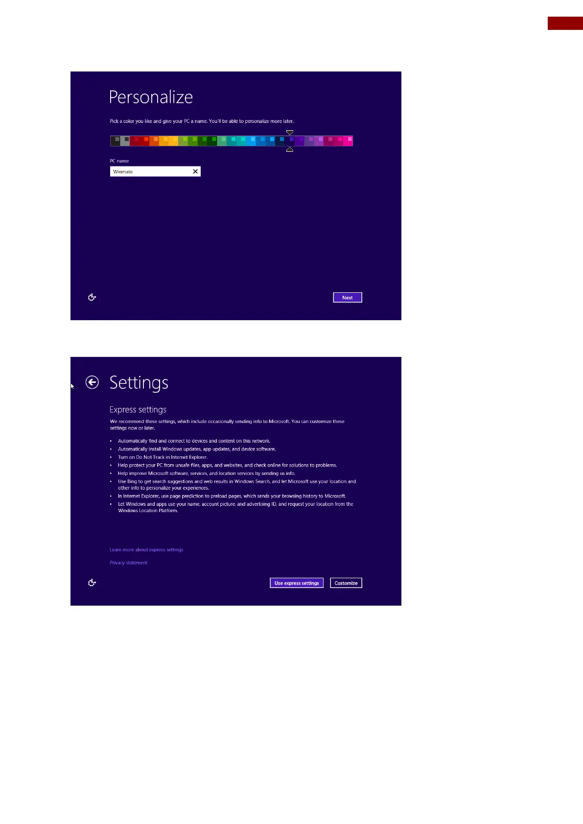 5. On the Settings page screen, choose Use express settings for the fastest setup.