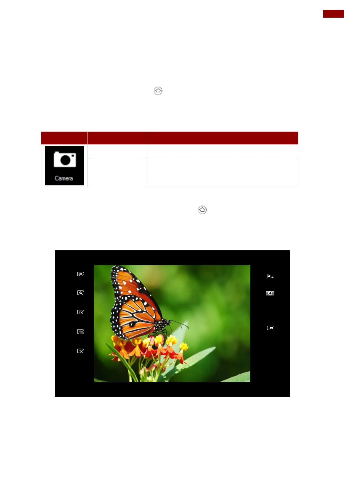 6. Tap on the Camera icon to go into the Camera menu. The Camera user interface will take