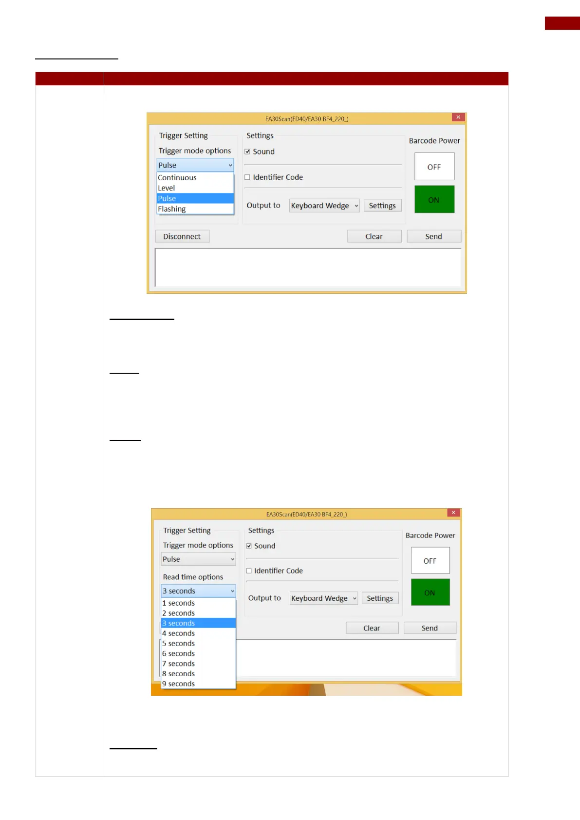 Under Flashing mode, the scanning light is flashing, and the barcode