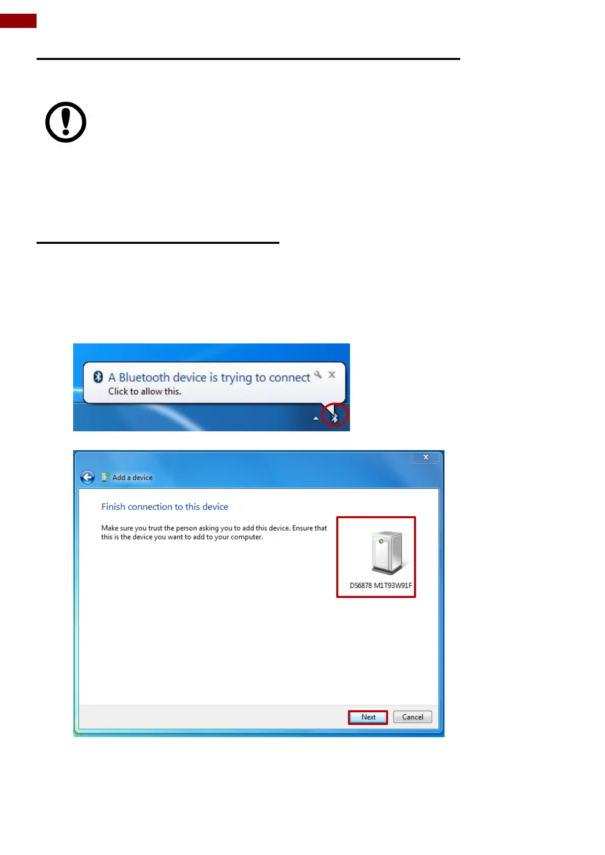 2. Perform scanning procedures. A Bluetooth notification window pop-up on the right hand