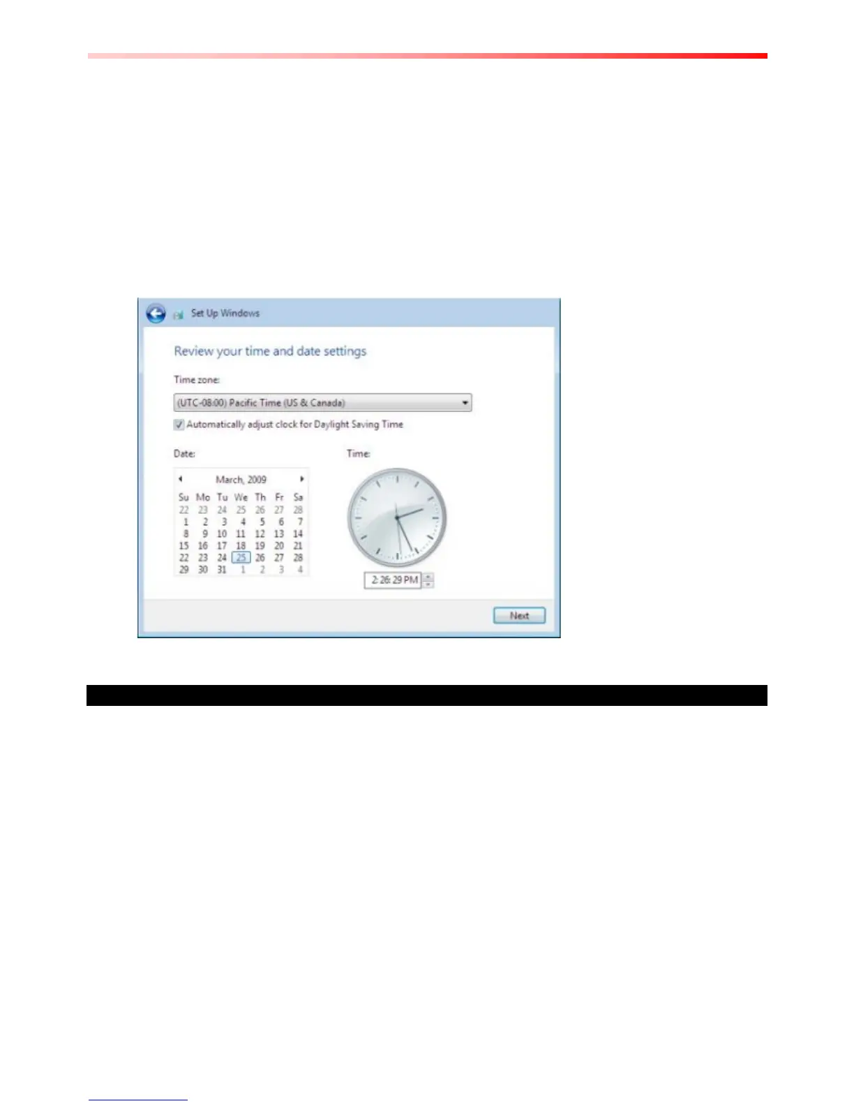 Verify your time zone, time, and date. Make any necessary changes. Then click Next to continue.