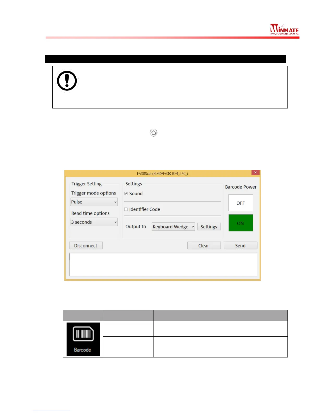 2. Choose “Device ON/OFF” and click on “Barcode”, and the setting utility will show