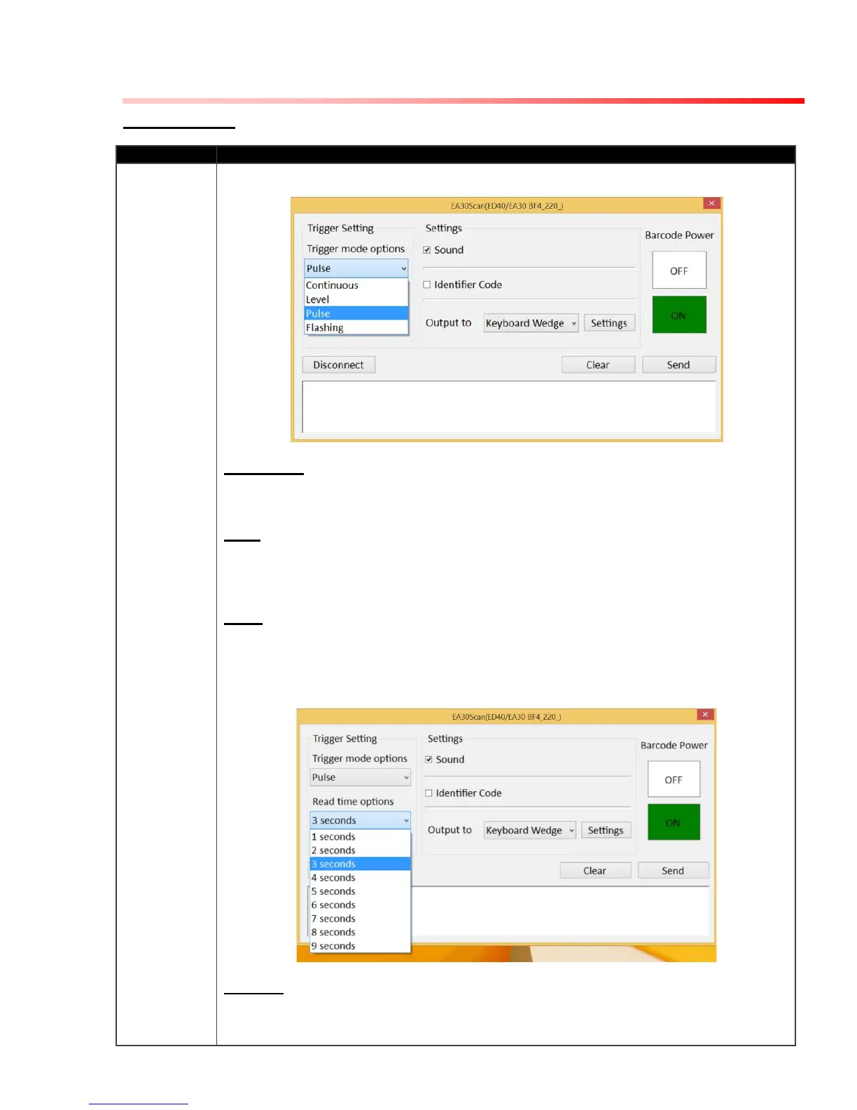 Under Pulse mode, user can define the scanning time after each trigger. The scanning