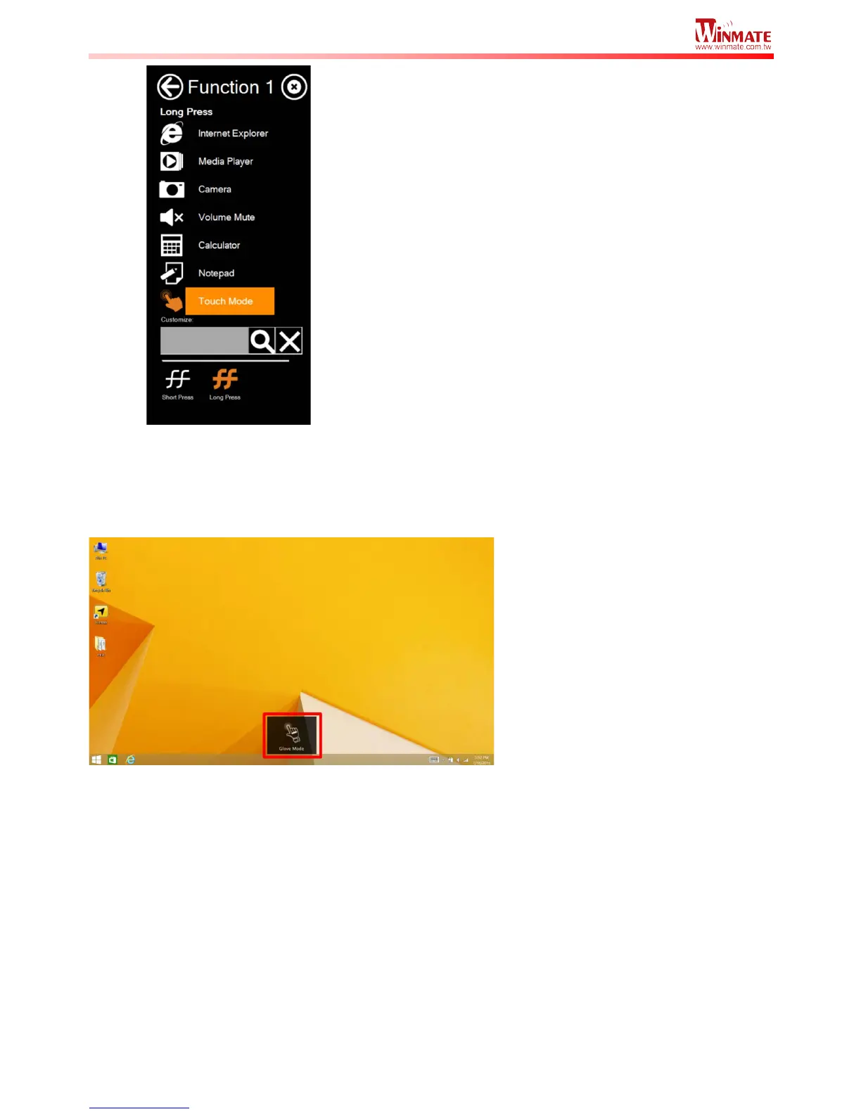 Once the touchscreen mode switching is set to the programmable function button, Long Press