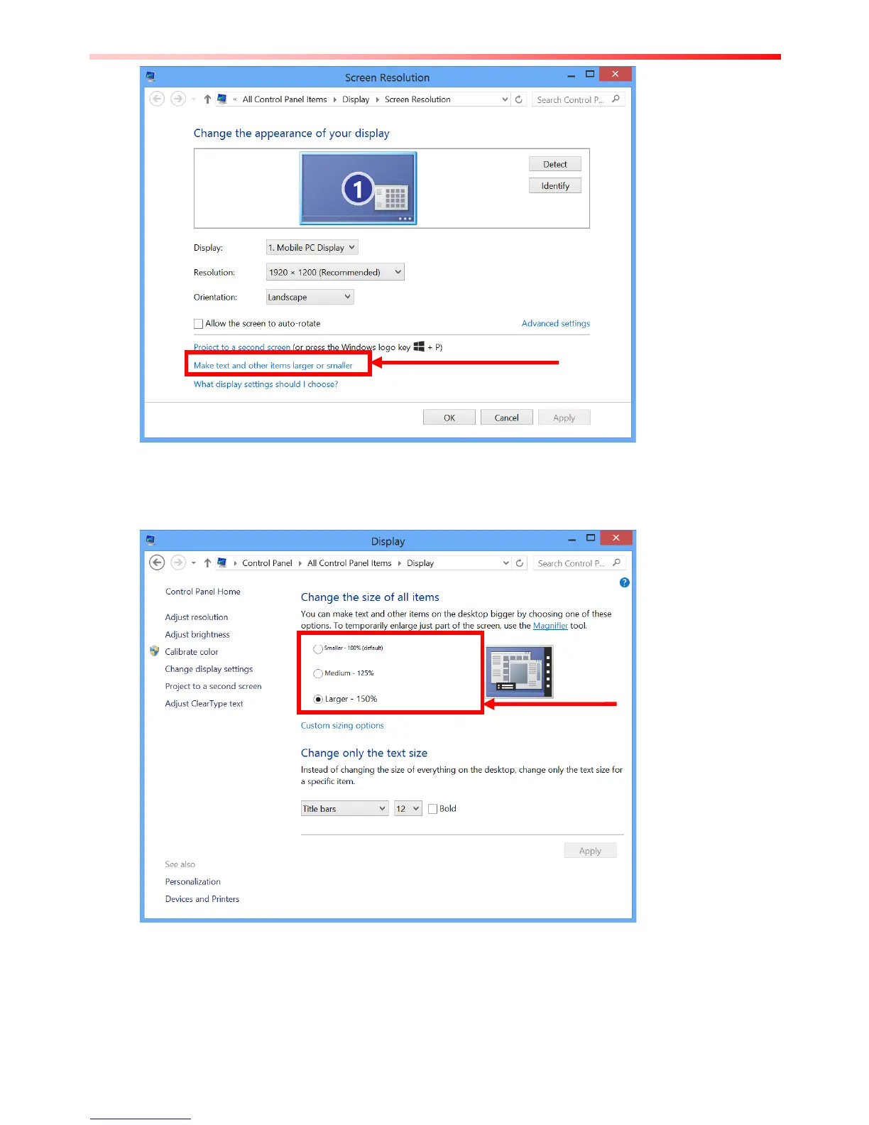 3. ADisplaywindow will show up. Under Change the size of all itemssection, change
