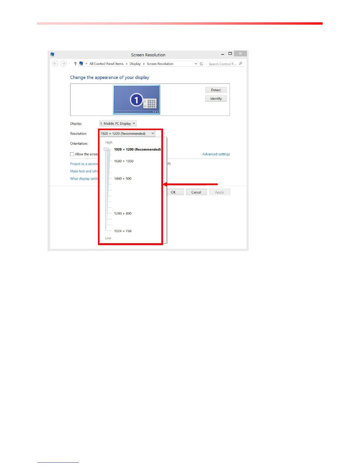 2. Click on the dropdown option next to “Resolution” and select the desire resolution by