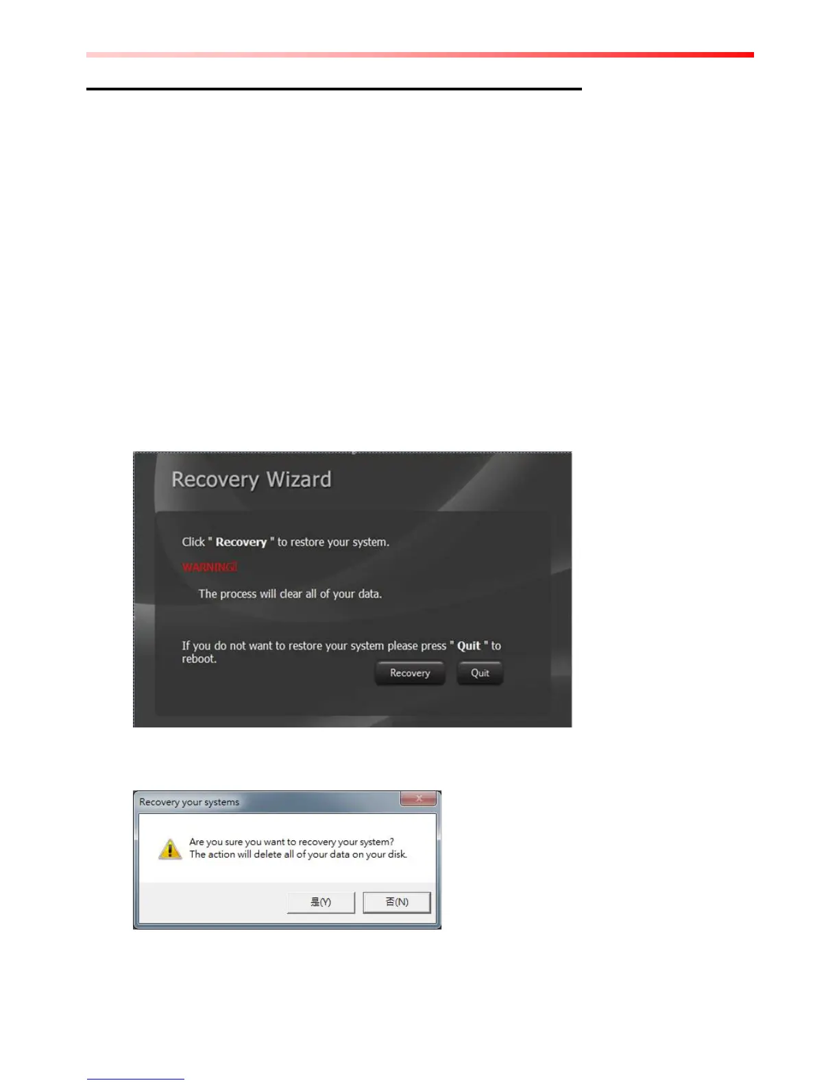 Warning: Before starting the recovery process, be sure to backup all user data, as all data will