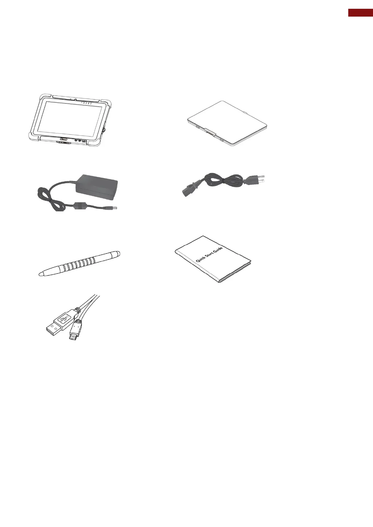 Check and identify the standard supplied accessories.