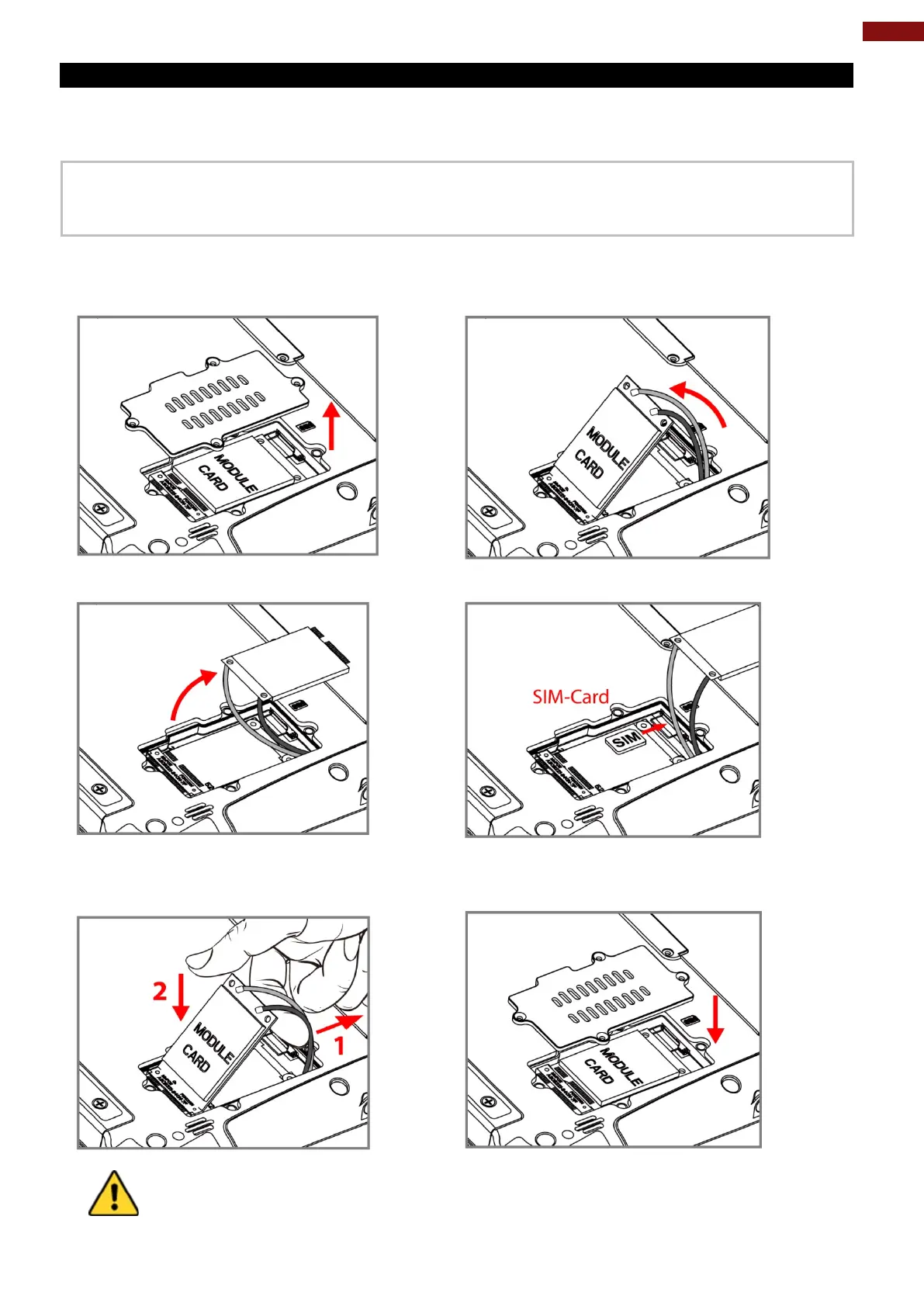 Attention Lors de la réinsertion du module 3G / LTE, veuillez faire attention à
