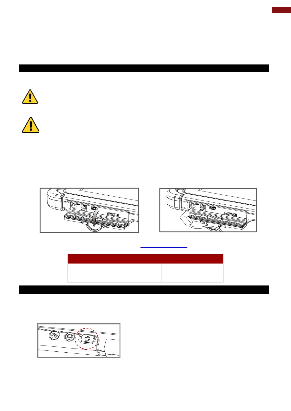 Attention N'utilisez que l'adaptateur secteur fourni avec votre tablette. L'utilisation d'autres